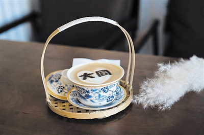 大同拿鐵是一款熱飲。這款咖啡用蓋碗盛放,別有一番韻味。杯中放桂花糖漿,加咖啡液,牛奶打發(fā)出奶泡,輕端咖啡杯,將奶泡倒入搖勻,然后用奶泡拉花。點睛之筆是將模具蓋于杯口之上,撒可可粉。一番操作之后,取下模具,心形的圖案上便有了“大同”二字。青花的蓋碗,奶白色的心形圖案,咖啡色的“大同”浮于其上,已然是一幅獨具巧思的畫卷。抿一口,咖啡的醇厚里裹著不易察覺的甜,不張揚,倒像這古城里的尋常日子,踏實而溫暖。或許是加了桂花糖,又或是奶溫調(diào)得格外熨帖,喝著喝著,時光仿佛都柔和了幾分。